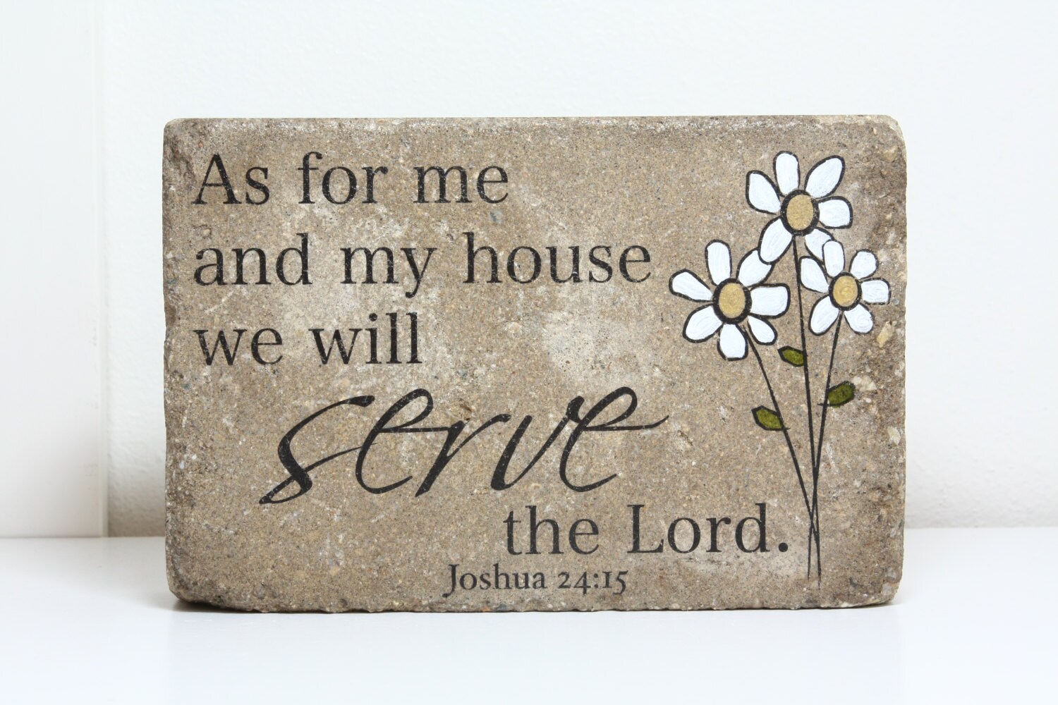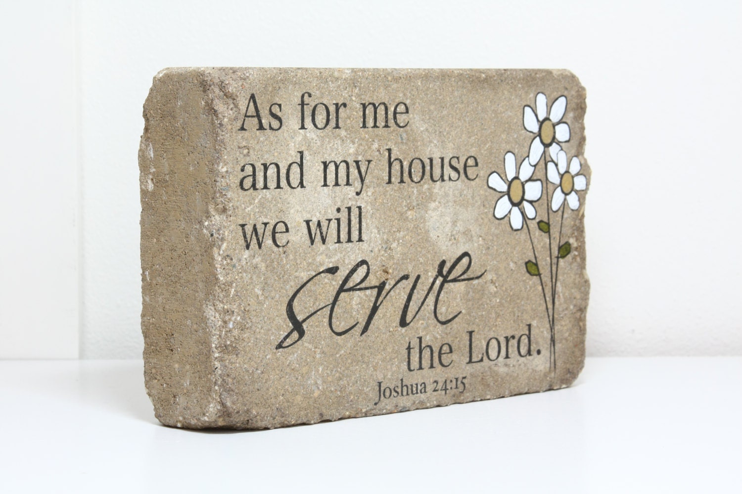 A beautifully handcrafted stone for home or garden. Its a tumbled concrete stone that is made with high quality inks and paints and is fully sealed for all weather. This rustic yet classy stone is something that can be kept on a shelf, used as a bookend or tucked into a special spot in the garden. It comes packaged safely and beautifully in a white box and will include a free care card and pads for the bottom to protect furniture if its kept indoors. A nice alternative to sending flowers. It makes a great keepsake gift and will be sure to bring so much enjoyment for years to come.