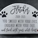 Want a name and/or date added? The paw prints would be split and the name and date would go on the top. The personalized version would be made in the regular production time.