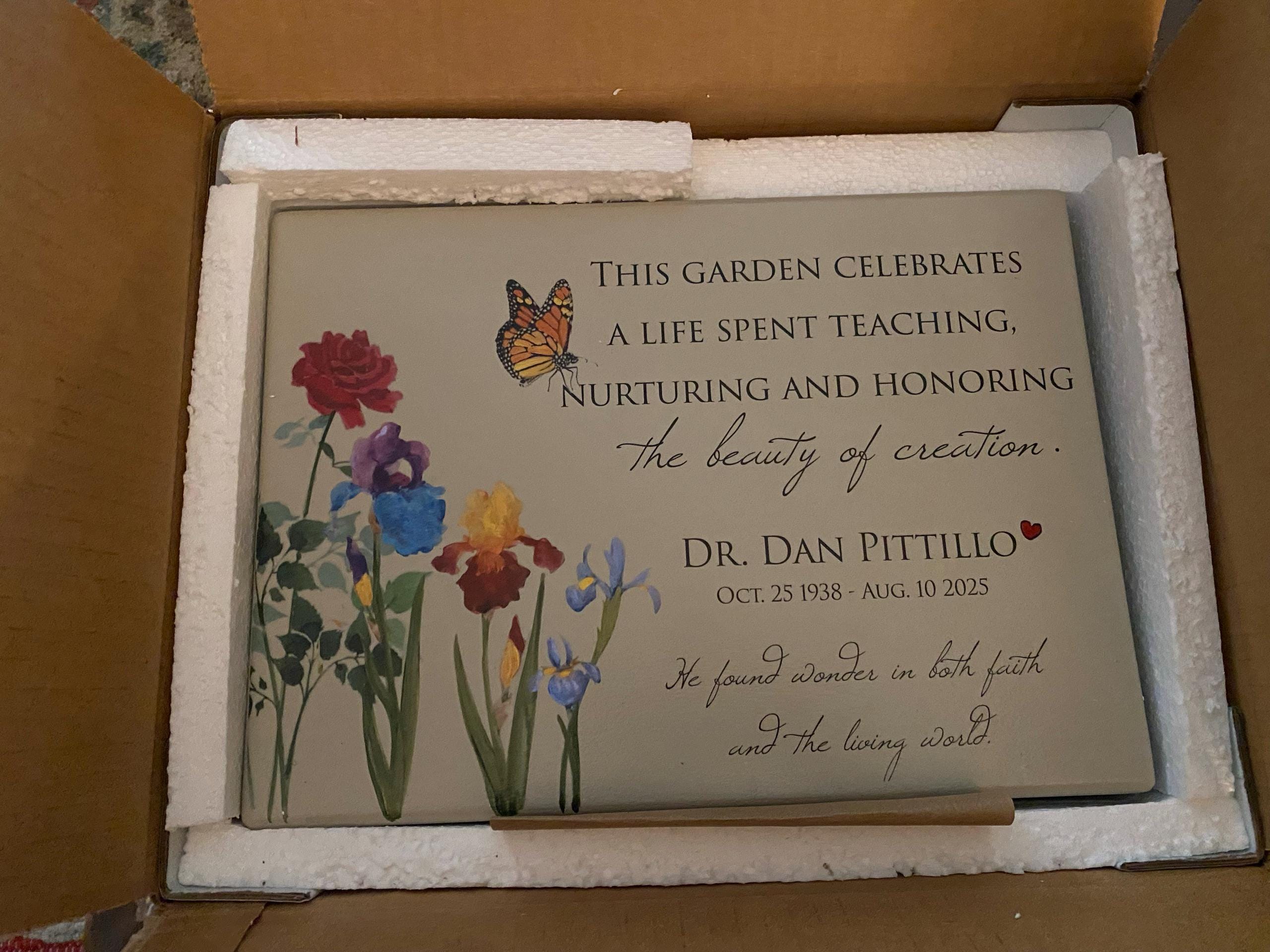 We chose to honor and remember our dear friend and his life’s work and to dedicate our church’s pollinator garden in his memory. We easily communicated with the seller and she responded promptly and answered our questions so we were assured that our customized message would fit and got to preview the product before closing out the order. It arrived promptly. The end product exceeded our expectations and we were so very pleased. I know his family will be also!